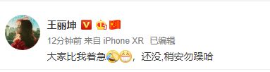 就当粉丝纷纷焦急等待时,她又重新编辑了文字,在原文基础上加了“还没”两个字。不知道是“调皮”,还是另有深意了。
