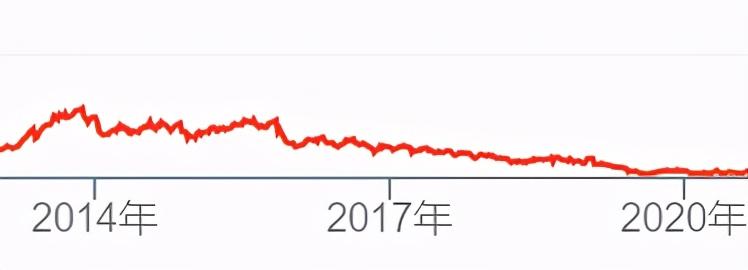 它的股票走势,也稳步向下。2014年到2020年,波动中下跌。