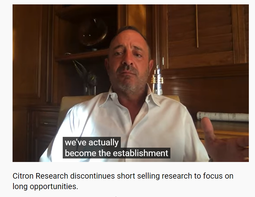 也在这一天,香橼再发了一条视频:安德鲁宣布,我做空了20年,从今以后,再也不做空了。
