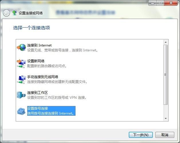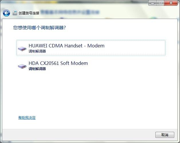 设置拨号连接:选择相应的调制解调器