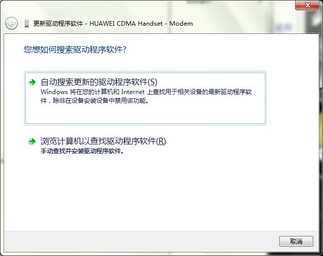 这就是我的手机在设备管理器下的显示,下面这张是驱动没安好的情况下,选中该未知设备,右键--更新驱动程序软件 的图,第一项是自动搜索,第二项是指定位置搜索