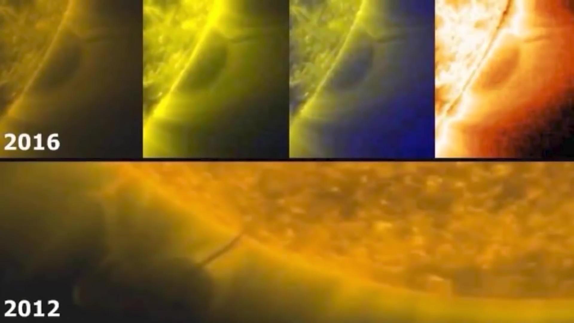 2016年,另一台太空望远镜拍摄了一个神秘球体的镜头,然而,球体的一部分被太阳隐藏了,我们看不到之前镜头中观察到的条纹状物质。2017年,一个球形物体再次出现在太阳表面,这一次,在物体和太阳之间清晰地看到了条纹状物质。然后,在 2016年11月30日Helioviewer将拍摄的单张照片上传到互联网,我们可以看到从太阳表面延伸出来一条长长的条纹,条纹另一端有一个白色物体,放大照片可以看到物体的形状,虽然没有提供任何地球图像来比较大小,但我们可以推断出这个物体真的很大,而且明显比地球大上好多。