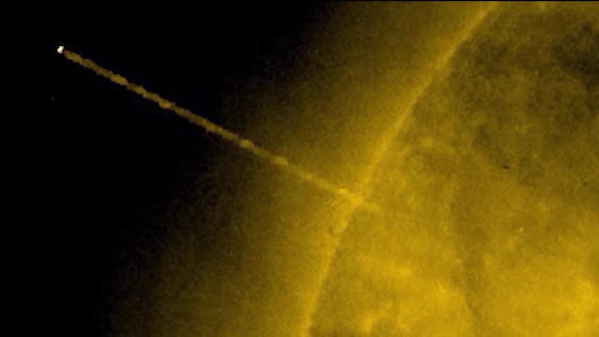 Helioviewer 的所有镜头均由太空望远镜拍摄,这些望远镜安装在地球上或地球大气层外。据估计,这个镜头中出现的球形物体至少比地球大几十倍,在该物体和太阳之间看到的条纹,似乎是该物体在吸收来自太阳的等离子体,为其提供动力。